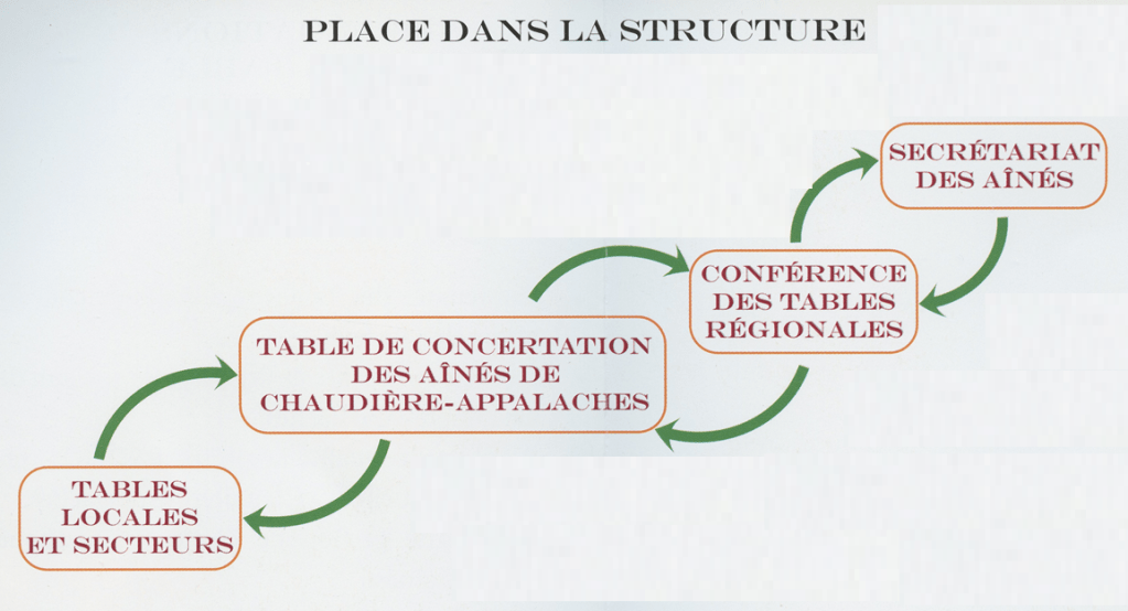 Les Tables de concertation régionales des aînés sont des lieux de discussion et d’échanges intersectoriels et multi réseaux, permettant de réunir différents intervenants communautaires, associatifs, institutionnels et instances régionales intéressés à s’engager dans une démarche concertée visant le mieux-être et l’amélioration des conditions de vie des aînés. En Chaudière-Appalaches, notre table a pour mission de contribuer à l’élaboration, à l’adoption et au suivi d’avis portant sur divers sujets représentatifs des préoccupations du milieu, et ce dans le respect des mandats et des responsabilités des divers intervenants concernés.